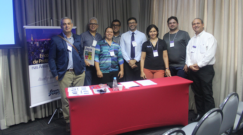 A física de radioterapia Fernanda Belletti, supervisora de radioproteção no Hospital do GRAACC, acompanhou as palestras dos físicos Yvone Maria Mascarenhas e Renato Dimenstein, no Encontro Técnico de Proteção Radiológica nas Áreas Médica e Industrial, promovido pela Sapra Landauer, no dia 15 de março, em São Paulo.
