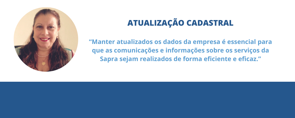 “Ou seja, manter atualizados os dados e nomes desses responsáveis de sua empresa é essencial para que as comunicações e informações sobre os serviços da Sapra sejam trocadas com as pessoas corretas, no tempo certo e nas situações necessárias.”, ressalta Maria de Fátima.