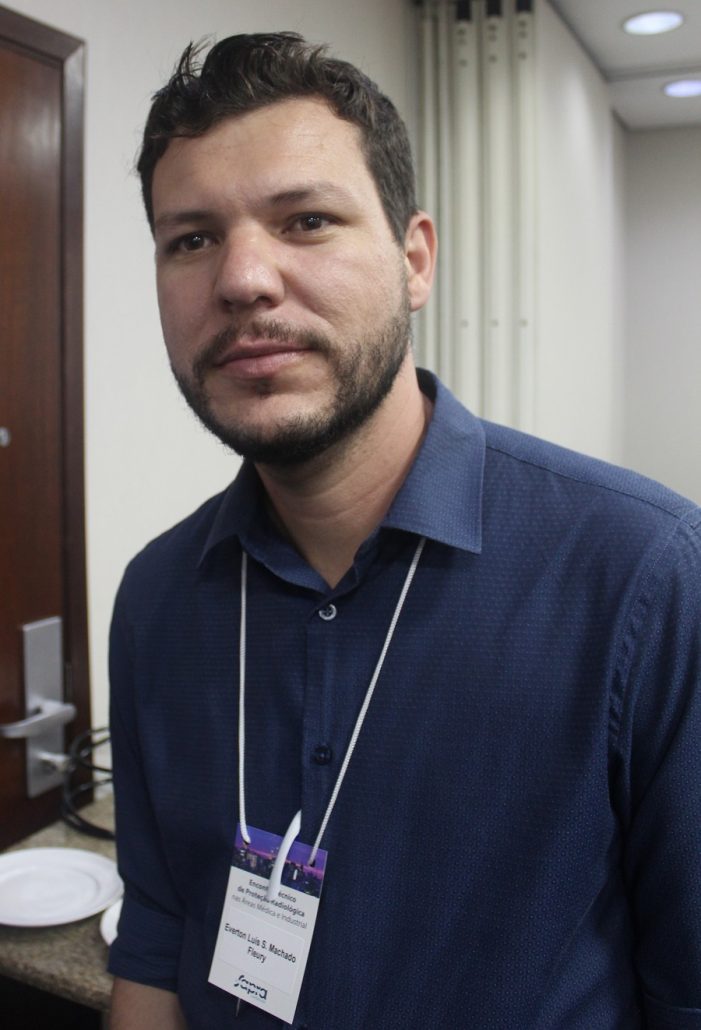 Machado também comentou a primeira palestra do evento, ministrada pela física Yvone Maria Mascarenhas sobre a mudança de grandeza utilizada atualmente pelos serviços de dosimetria individual externa no Brasil. Para ele, a mudança da grandeza Hx — equivalente de dose em Sievert (mSv) — para a chamada dose equivalente a uma profundidade, ou Hp(10), é vantajosa. “Eu acredito que vá inclusive ficar mais claro para os colaboradores na hora de expor essa questão do limite de tolerância, limite de doses”, acrescentou.