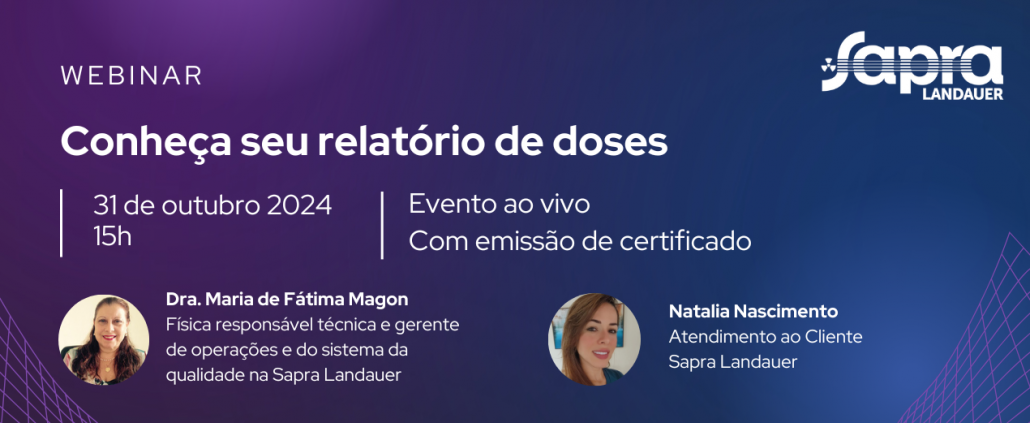 A Sapra Landauer realizou no dia 31 de outubro, às 15h, o webinar “Conheça seu relatório de doses“, um evento online e gratuito que contou com a participação da Dra. Maria de Fátima Magon, física, responsável técnica e gerente de operações e qualidade da Sapra Landauer, e Natalia Nascimento, do setor de Atendimento ao Cliente.