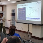 Nesta segunda edição do Encontro de Proteção Radiológica em Radiologia Intervencionista, a primeira palestra foi ministrada pela física Yvone Maria Mascarenhas, diretora-presidente da Sapra Landauer, que falou aos presentes sobre os desafios do controle de doses de dosimetria pessoal, abordando aspectos de prevenção e análise de dose a partir da dosimetria passiva dos profissionais.